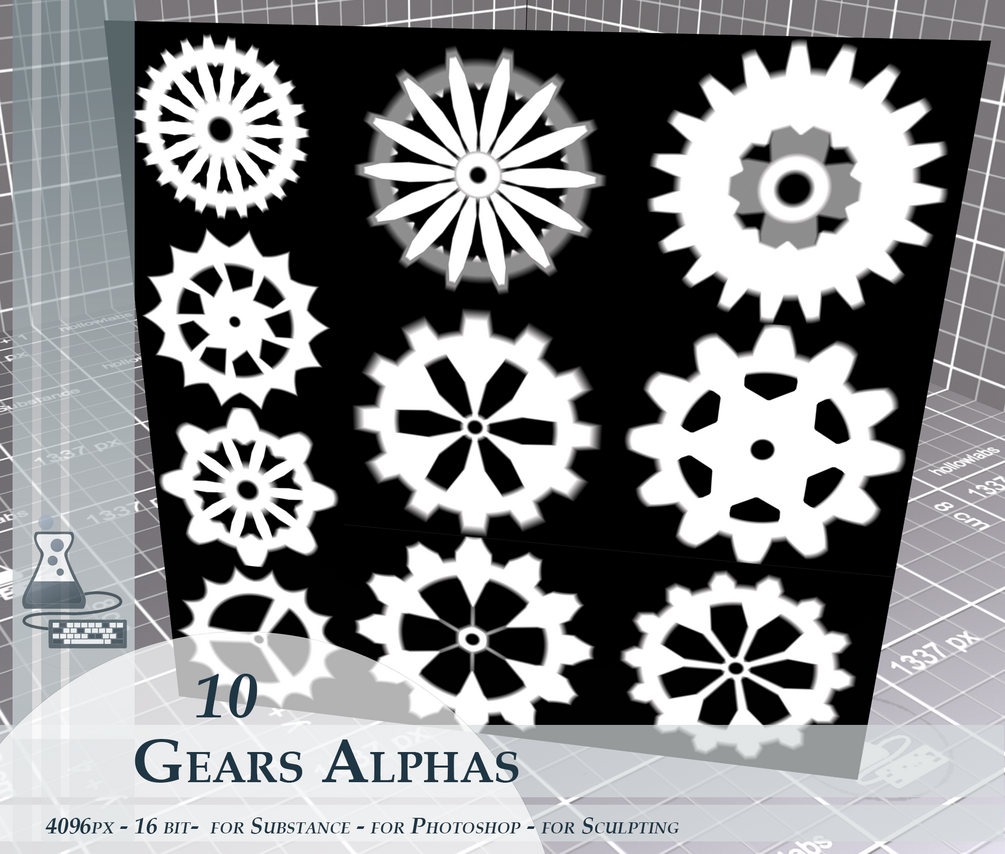 Gears Alphas / Height Maps Vol1 - For Substance Painter or Quixel